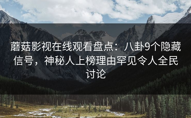 在这个信息爆炸的时代,观看影视剧已不仅仅是消磨时间的方式,更多的人通过影视作品实现了各种情感认同和心理投射。而在“蘑菇影视”这一平台上,除了精彩的剧情和出色的演员,这里更隐藏着一些让人意想不到的八卦信号。通过这些信号,我们可以窥探到更多幕后故事,从而更好地理解影视作品的魅力。